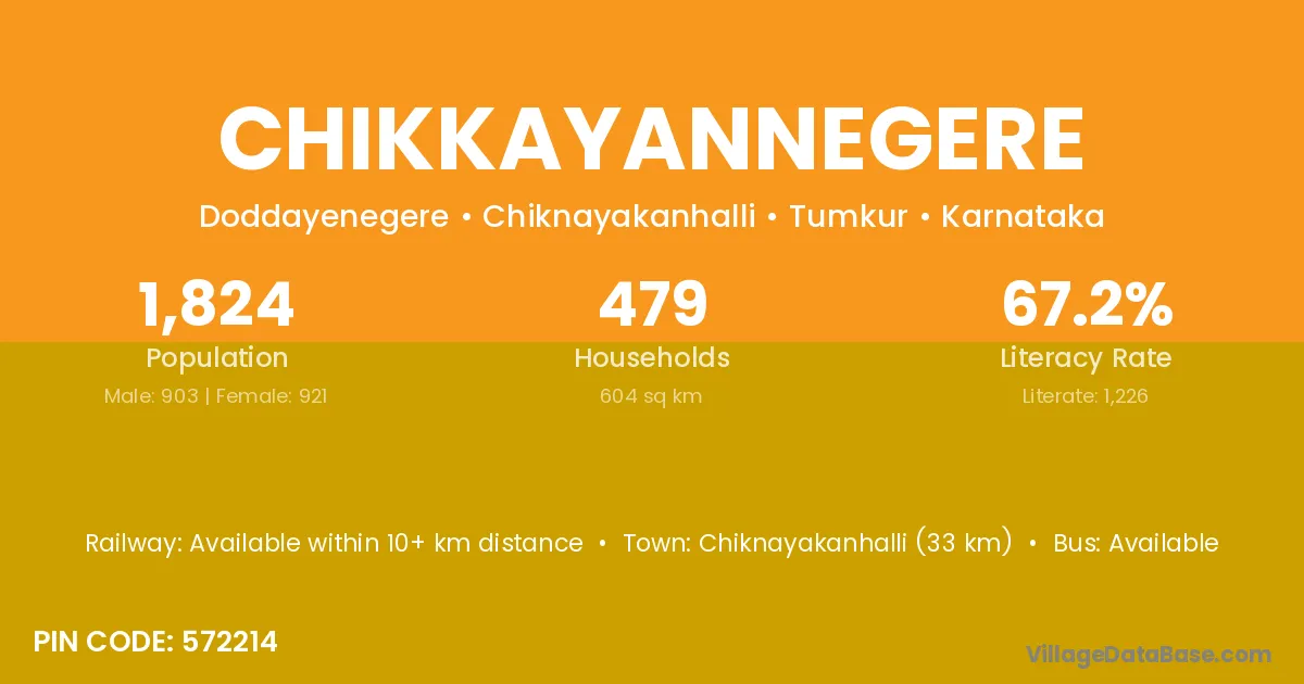 Chikkayannegere village has a total population of 1,824 people, of which 903 are males and 921 are females.