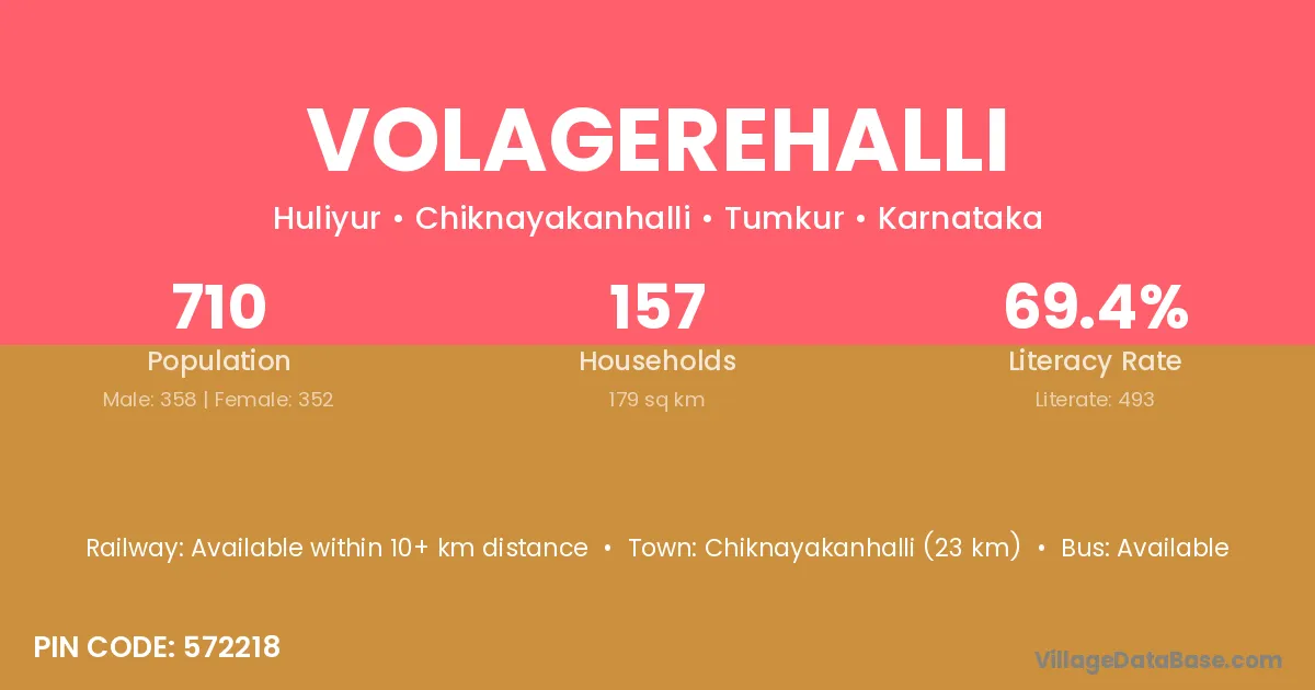 Volagerehalli village has a total population of 710 people, of which 358 are males and 352 are females.