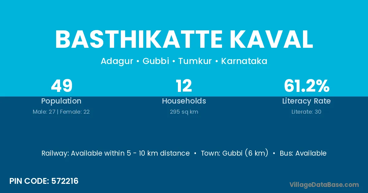 Basthikatte Kaval village has a total population of 49 people, of which 27 are males and 22 are females.