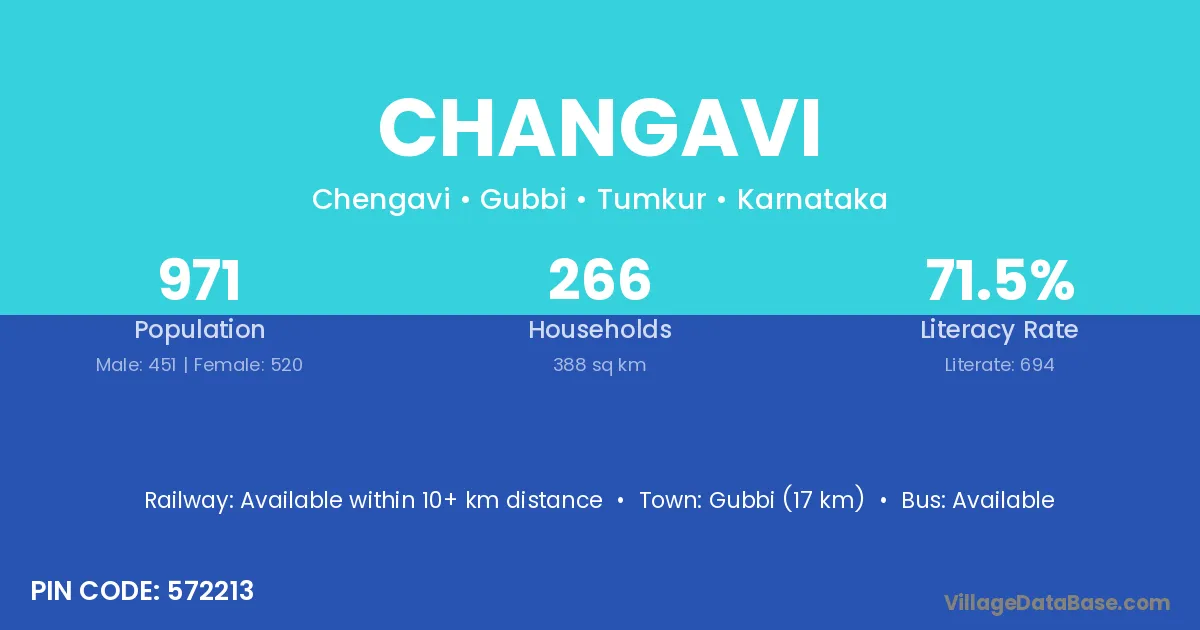 Gubbi (17 km) is the nearest town to Changavi village for major economic activities and is located approximately 17 km away.