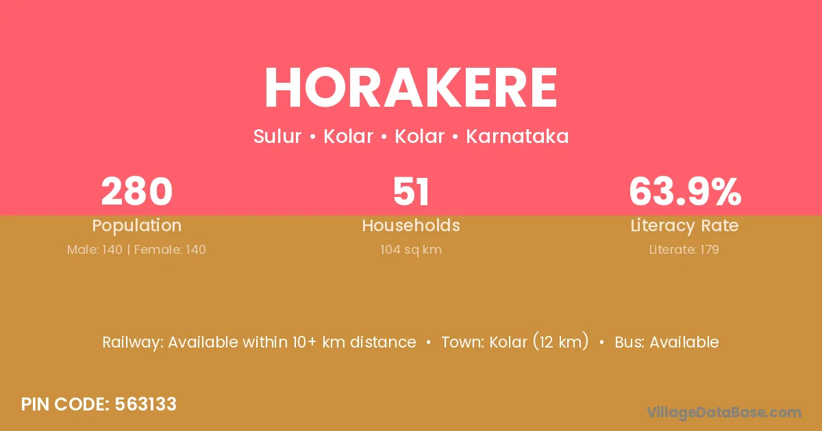 Gubbi (27 km) is the nearest town to Horakere village for major economic activities and is located approximately 27 km away.