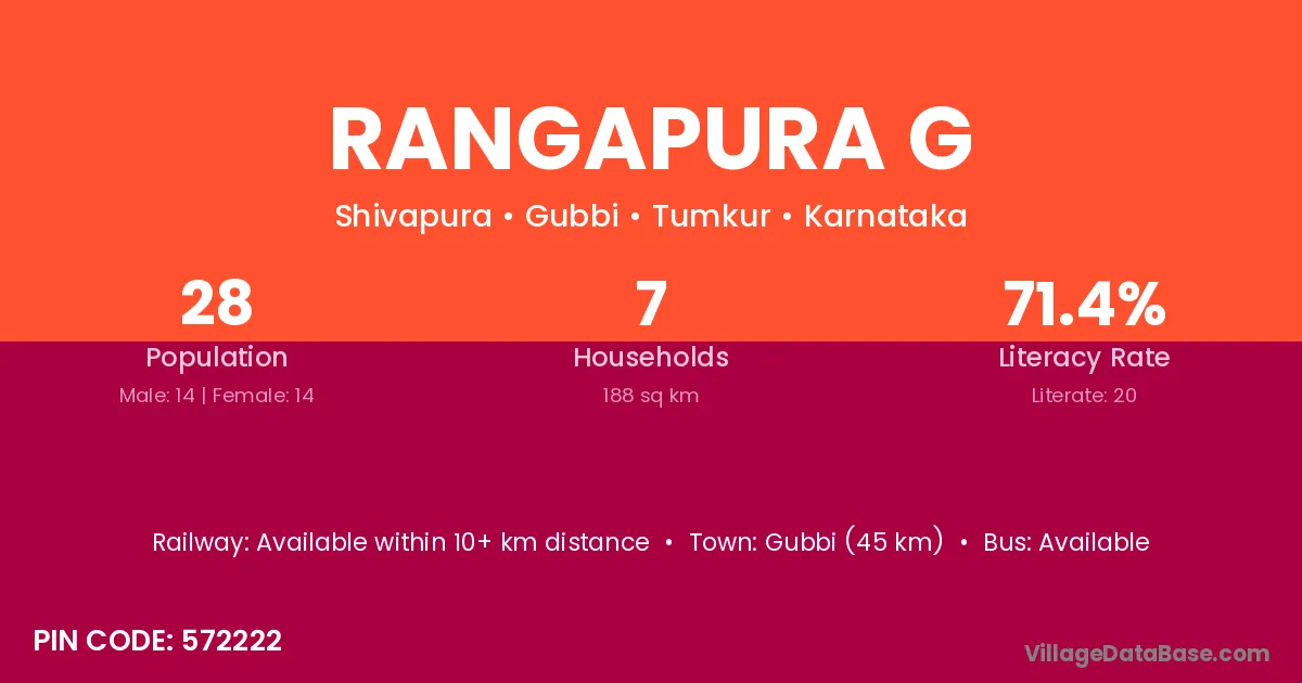 Rangapura G village has a total population of 28 people, of which 14 are males and 14 are females.