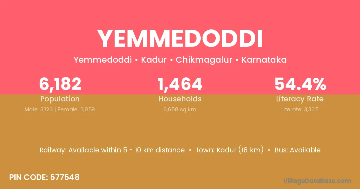 Chiknayakanhalli (15 km) is the nearest town to Yemmedoddi village for major economic activities and is located approximately 15 km away.