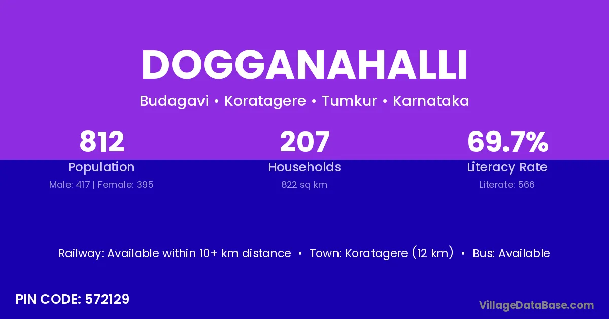 Koratagere (12 km) is the nearest town to Dogganahalli village for major economic activities and is located approximately 12 km away.