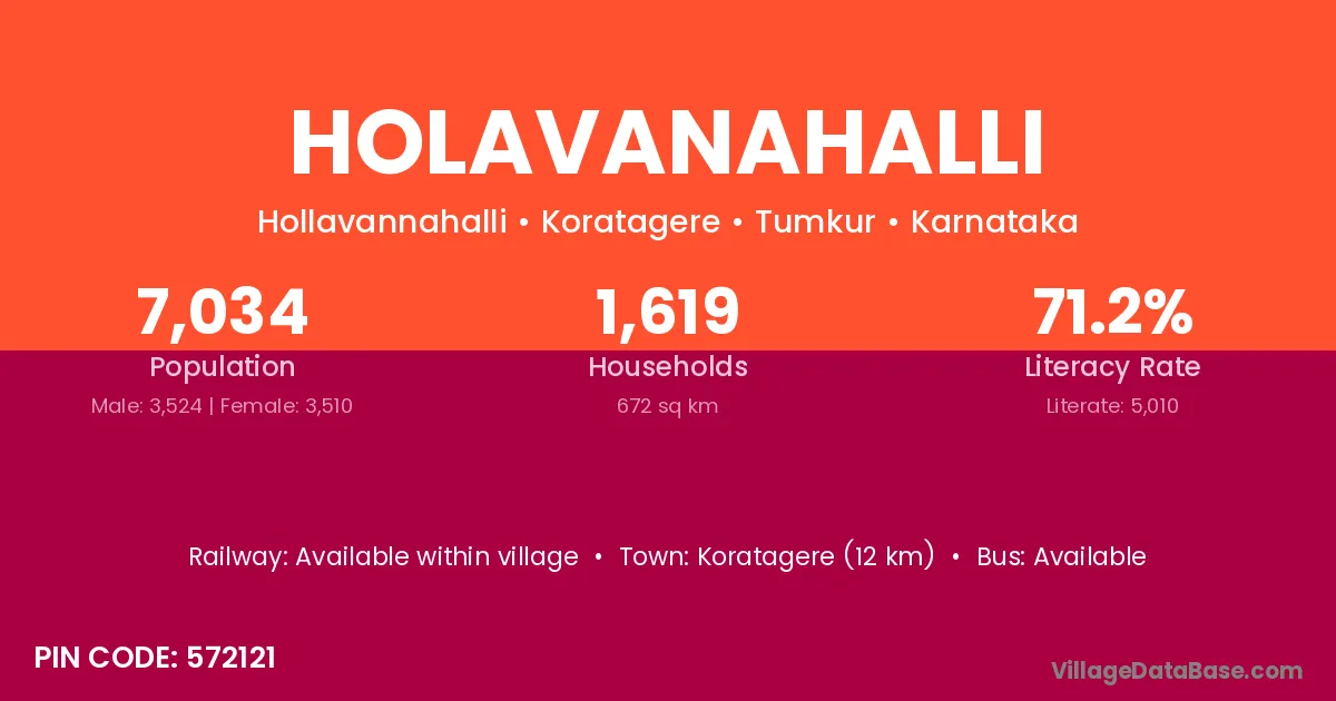 Koratagere (12 km) is the nearest town to Holavanahalli village for major economic activities and is located approximately 12 km away.
