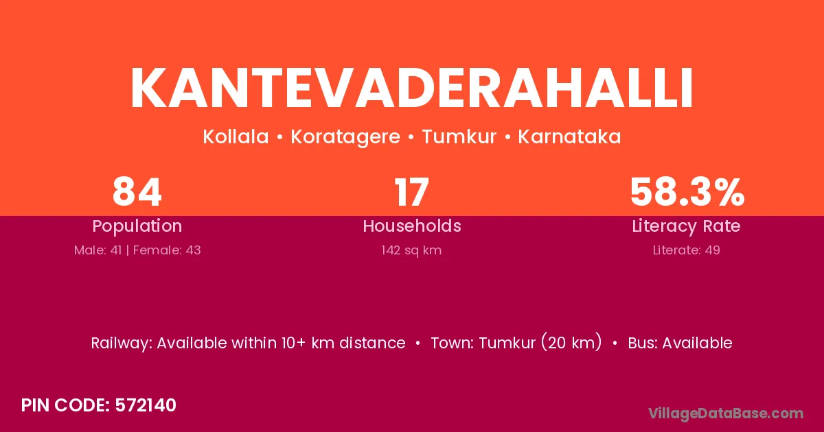 Kantevaderahalli village has a total population of 84 people, of which 41 are males and 43 are females.