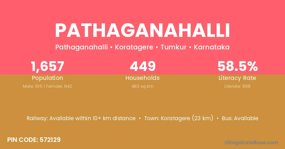 Koratagere (23 km) is the nearest town to Pathaganahalli village for major economic activities and is located approximately 23 km away.