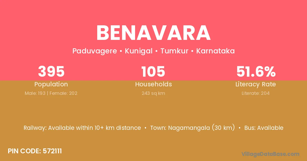 Nagamangala (30 km) is the nearest town to Benavara village for major economic activities and is located approximately 30 km away.
