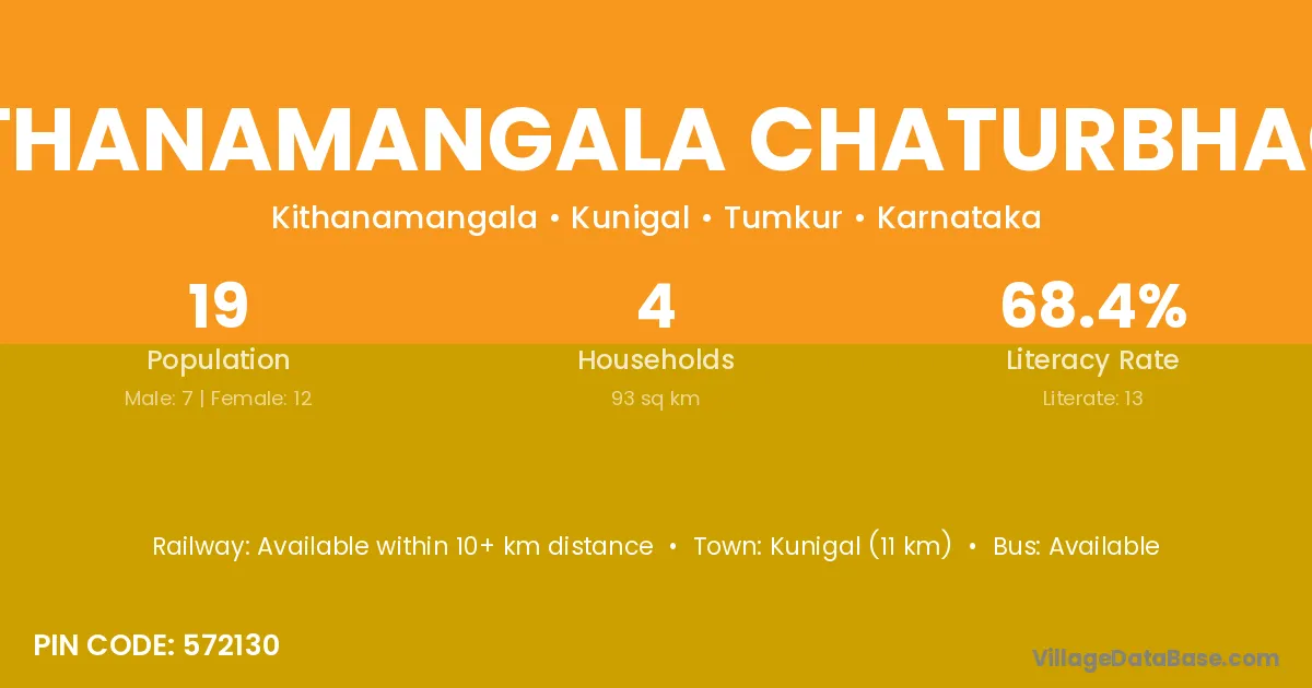 Kithanamangala Chaturbhaga village has a total population of 19 people, of which 7 are males and 12 are females.
