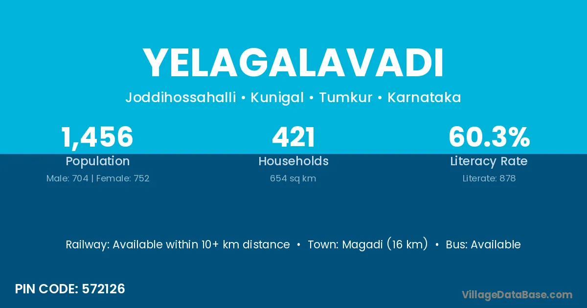 Magadi (16 km) is the nearest town to Yelagalavadi village for major economic activities and is located approximately 16 km away.