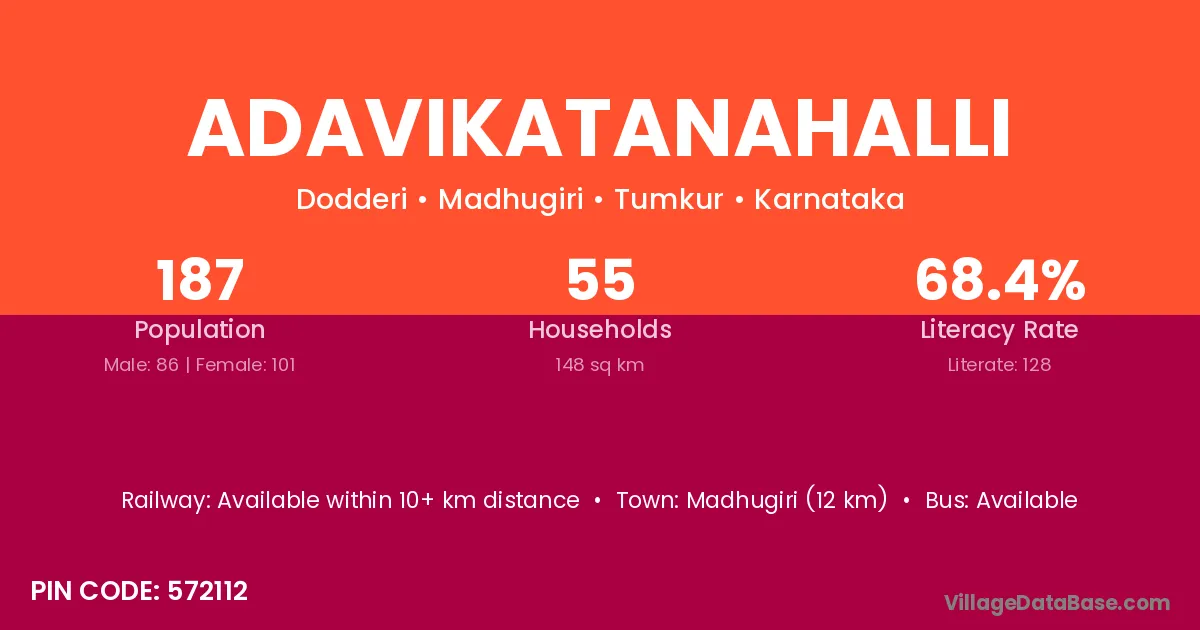 Madhugiri (12 km) is the nearest town to Adavikatanahalli village for major economic activities and is located approximately 12 km away.