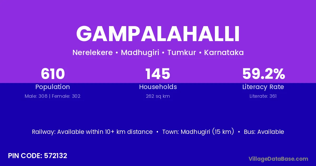 Gampalahalli village has a total population of 610 people, of which 308 are males and 302 are females.