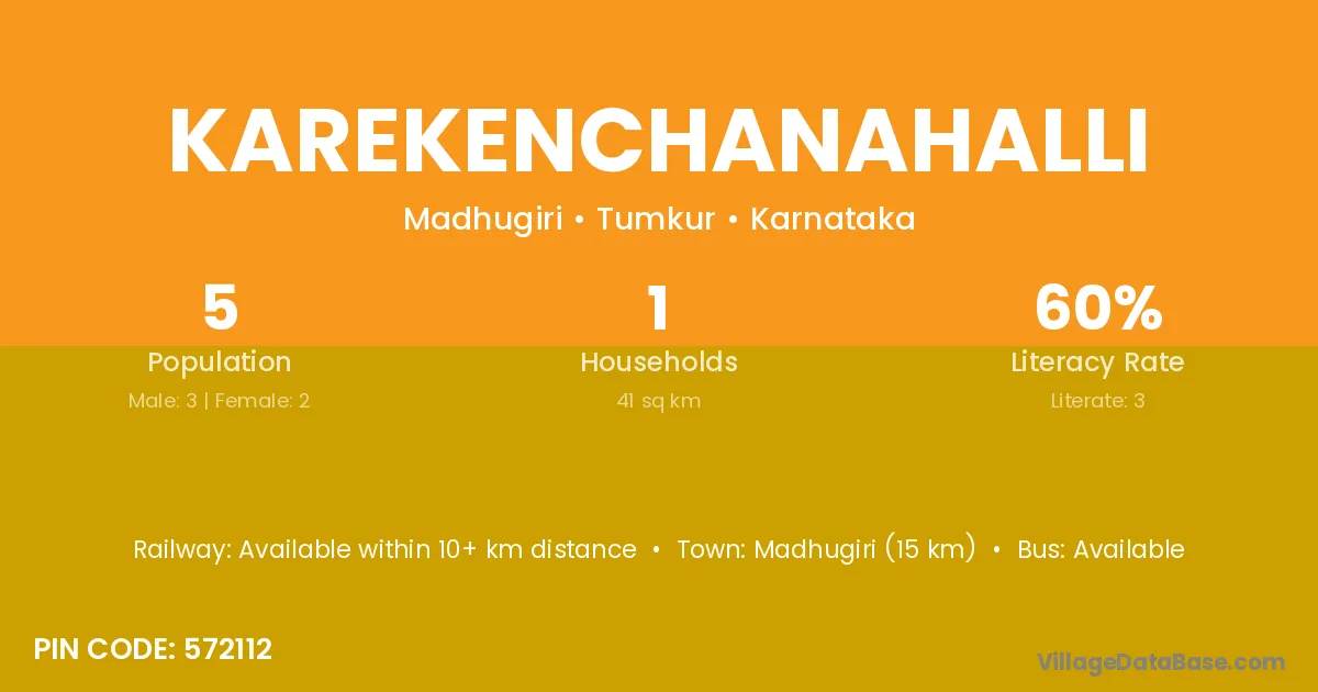 Karekenchanahalli village has a total population of 5 people, of which 3 are males and 2 are females.