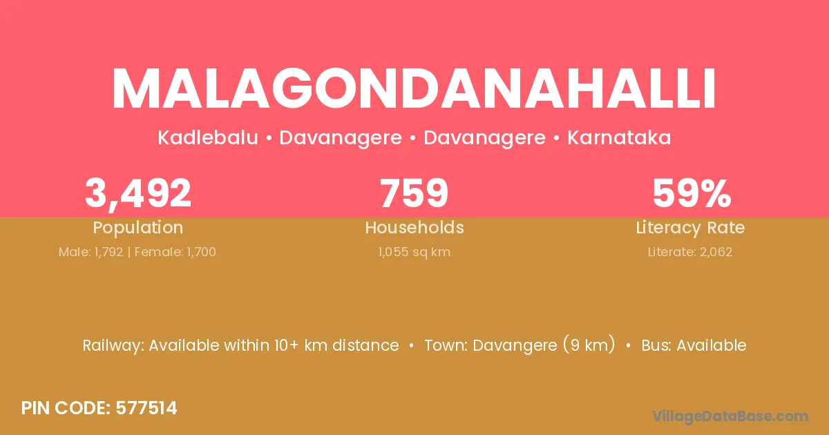 Madakasira (a.p.) (17 km) is the nearest town to Malagondanahalli village for major economic activities and is located approximately 17 km away.