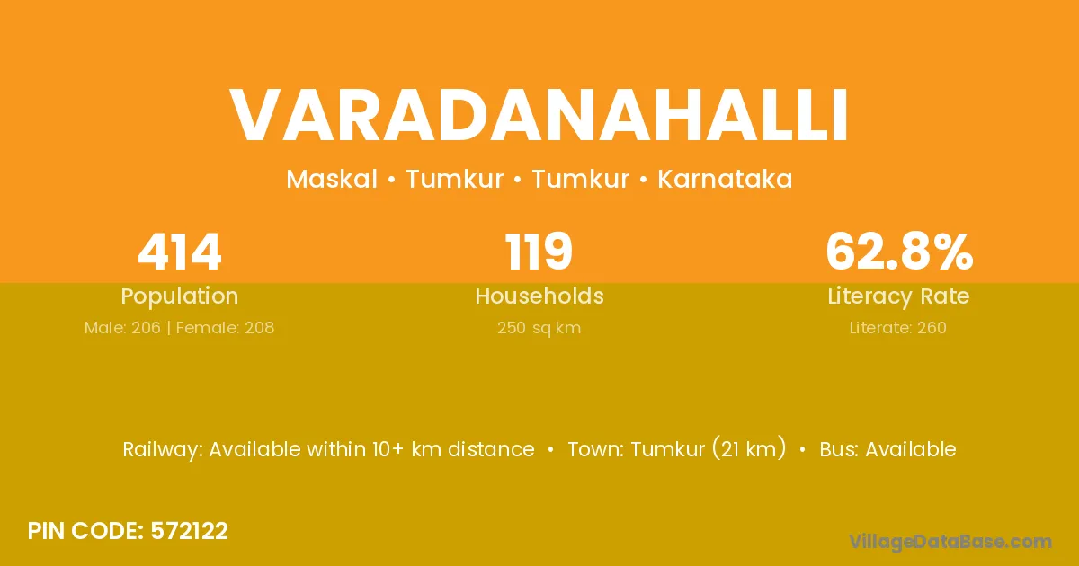 The literacy rate of Varadanahalli village is 36.36%. Male literacy stands at 40.98% and female literacy at 30.61%.