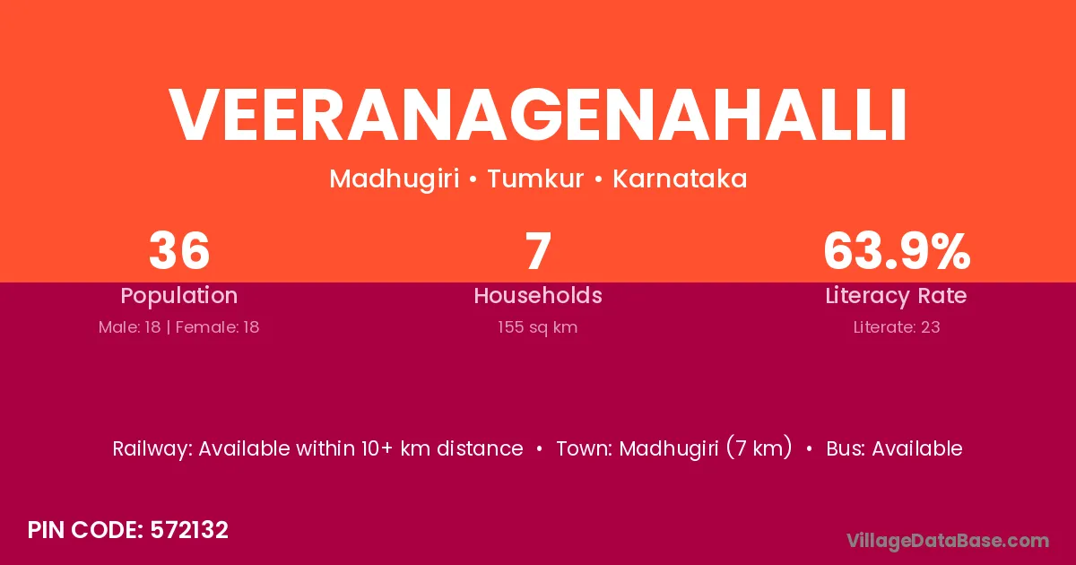 Madhugiri (7 km) is the nearest town to Veeranagenahalli village for major economic activities and is located approximately 7 km away.