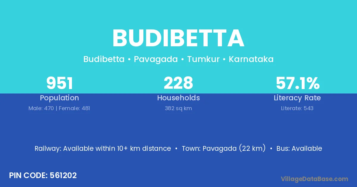 Budibetta village has a total population of 951 people, of which 470 are males and 481 are females.