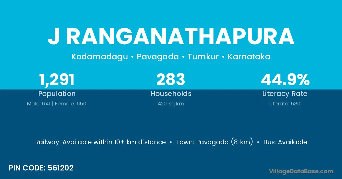 Pavagada (8 km) is the nearest town to J Ranganathapura village for major economic activities and is located approximately 8 km away.