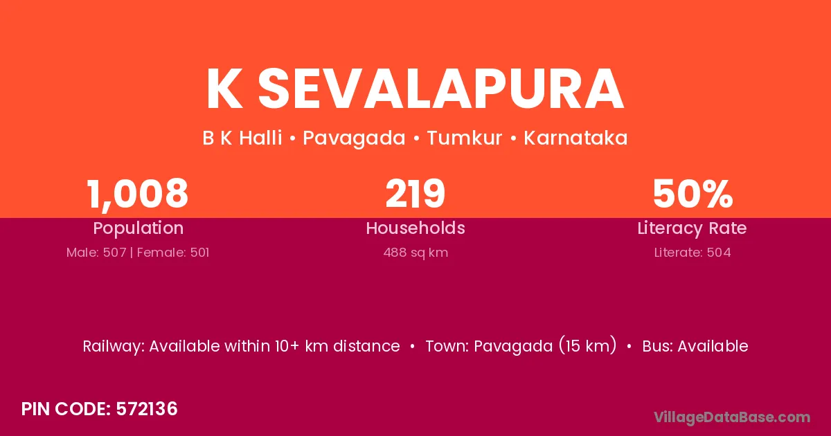 K Sevalapura village has a total population of 1,008 people, of which 507 are males and 501 are females.
