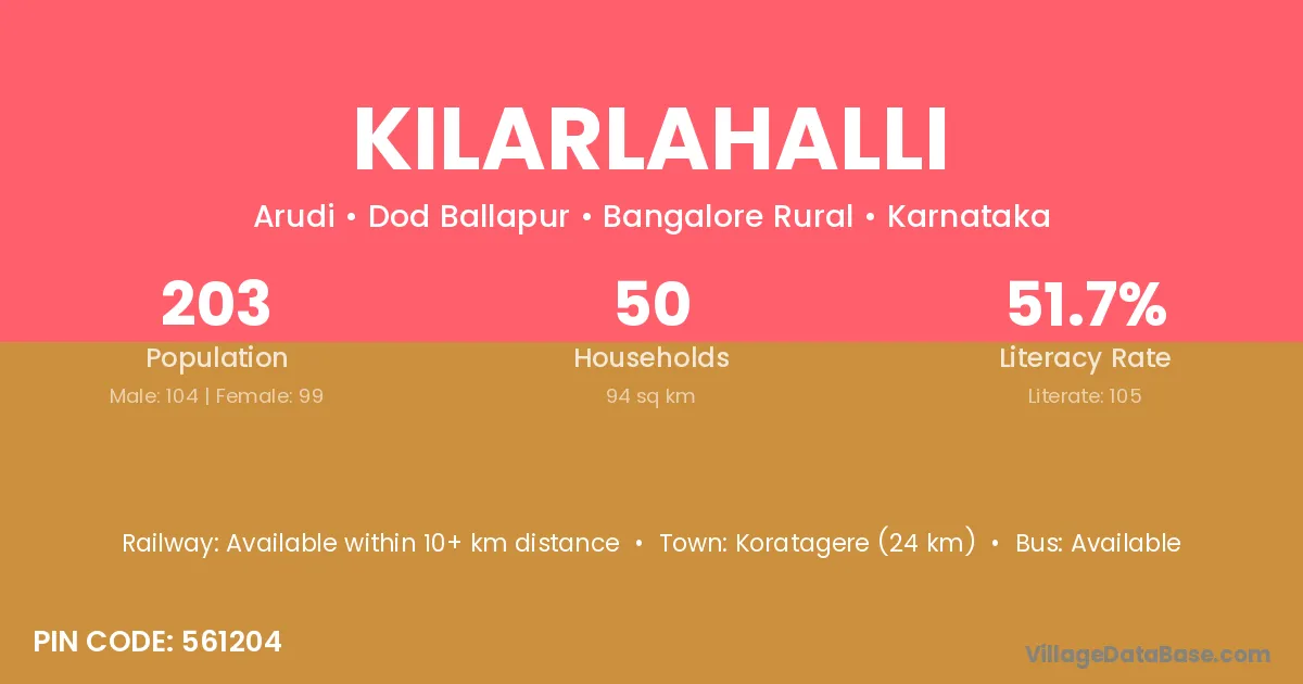 According to Census 2011 information, the village code of Kilarlahalli village is 561202.