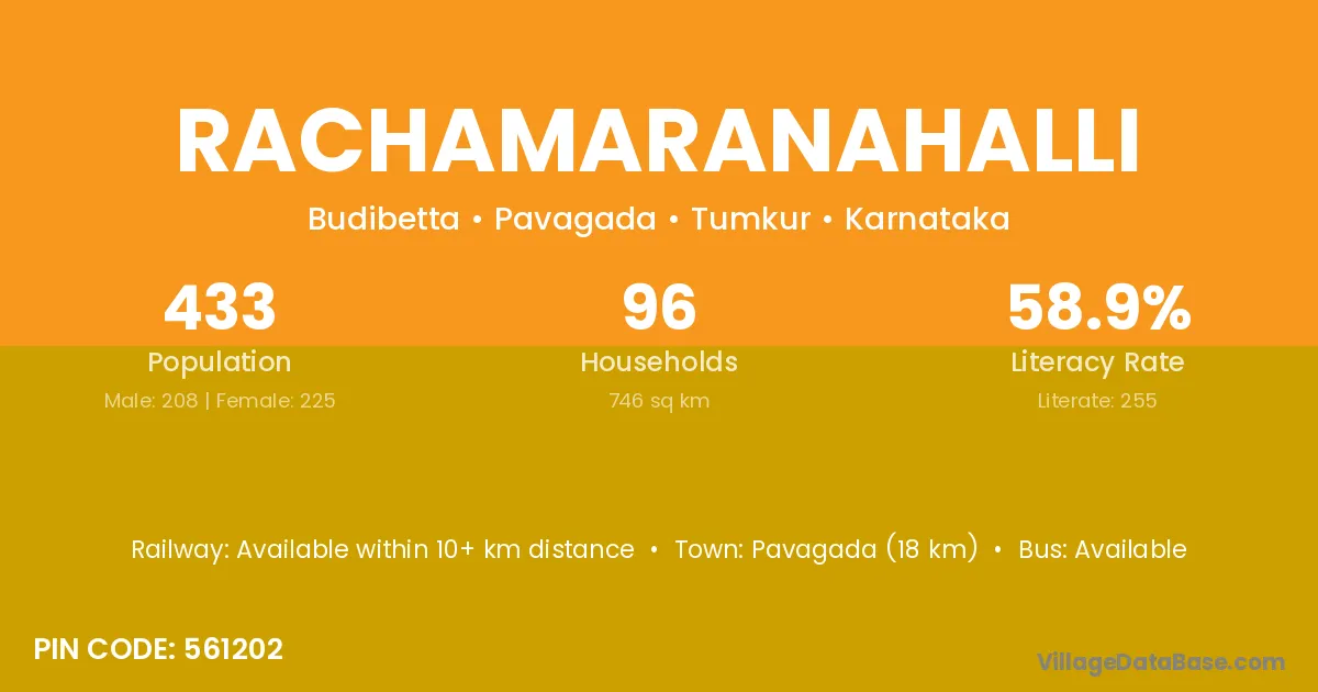 Pavagada (18 km) is the nearest town to Rachamaranahalli village for major economic activities and is located approximately 18 km away.