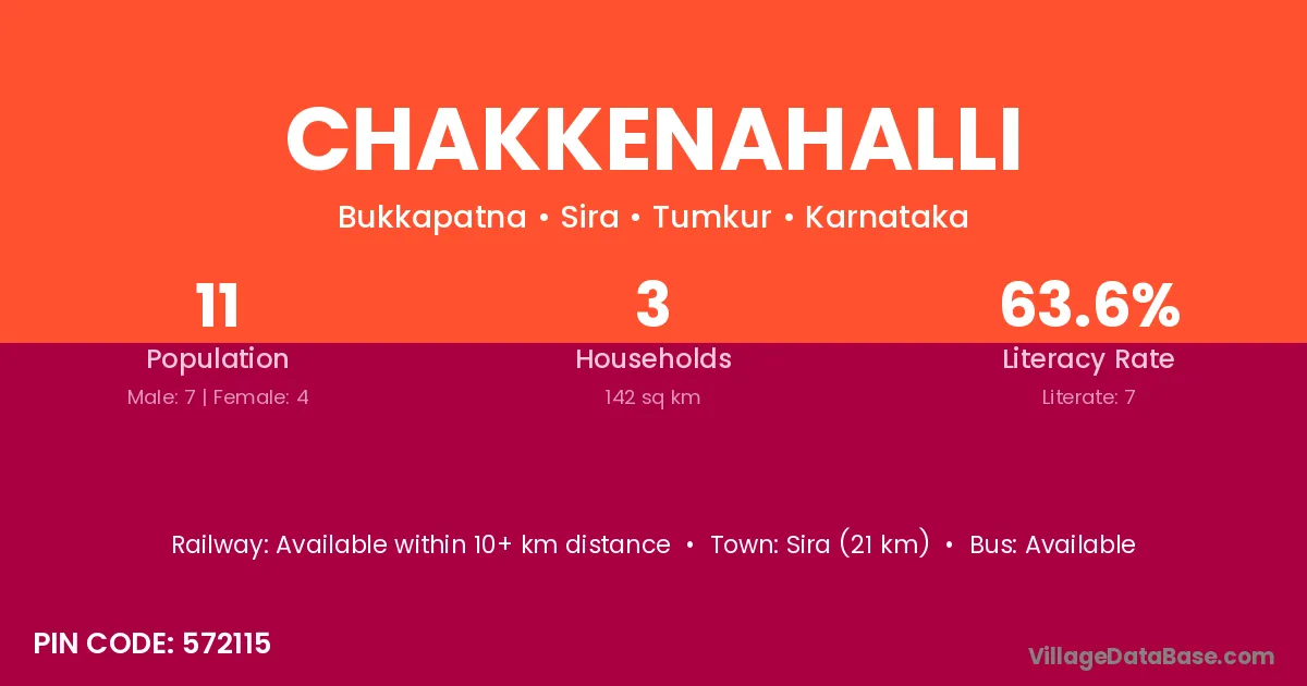 Chakkenahalli village has a total population of 11 people, of which 7 are males and 4 are females.
