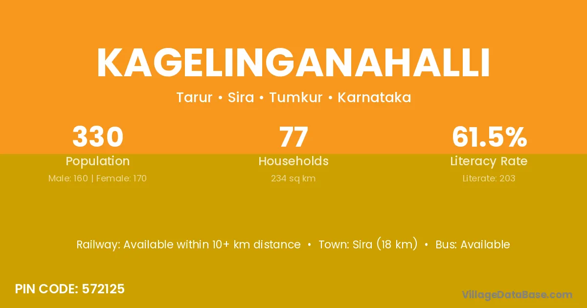Sira (18 km) is the nearest town to Kagelinganahalli village for major economic activities and is located approximately 18 km away.