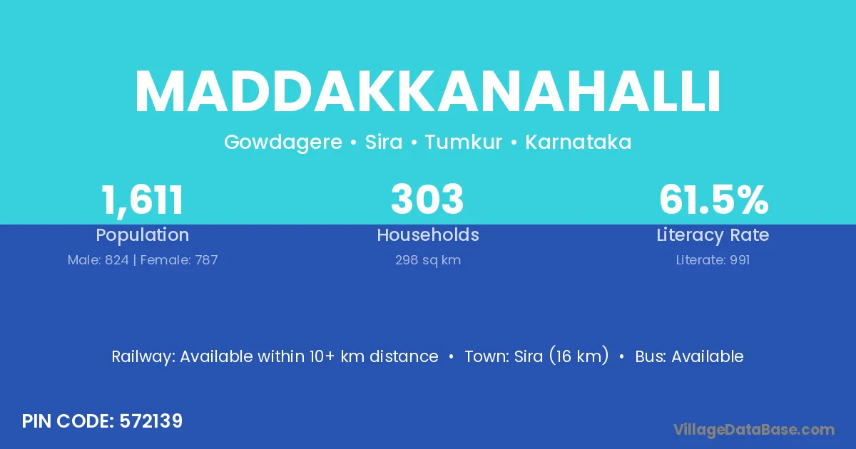 Sira (16 km) is the nearest town to Maddakkanahalli village for major economic activities and is located approximately 16 km away.