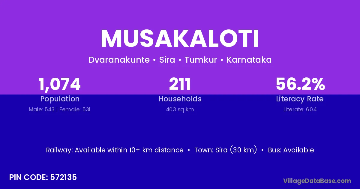 Sira (30 km) is the nearest town to Musakaloti village for major economic activities and is located approximately 30 km away.