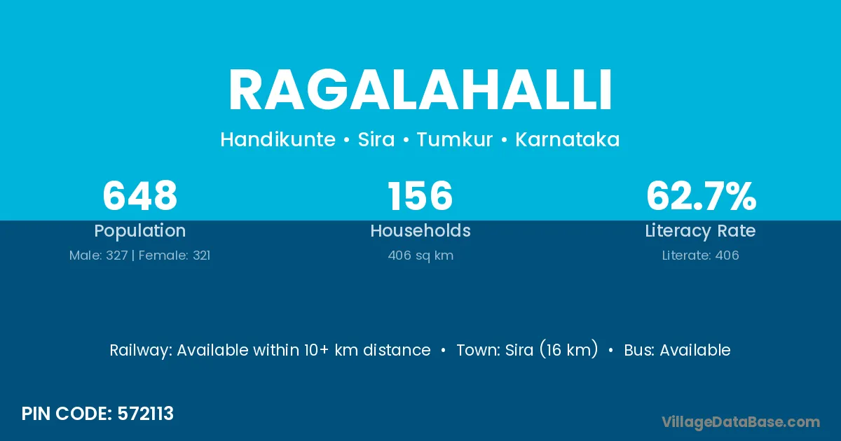 Ragalahalli village has a total population of 648 people, of which 327 are males and 321 are females.