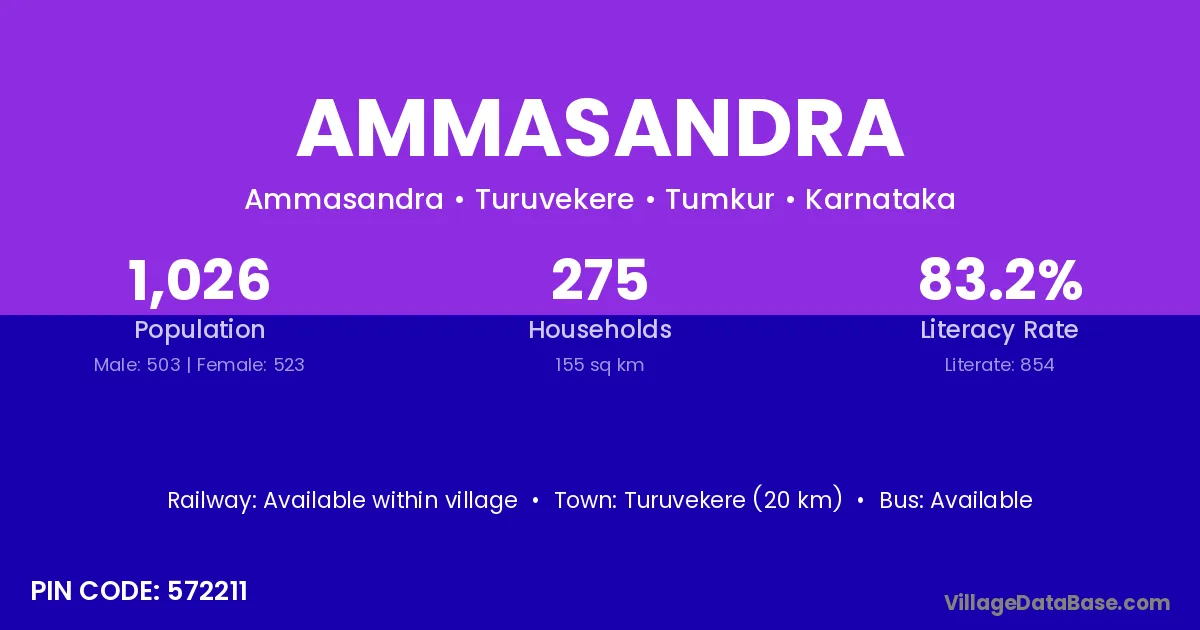 Turuvekere (20 km) is the nearest town to Ammasandra village for major economic activities and is located approximately 20 km away.