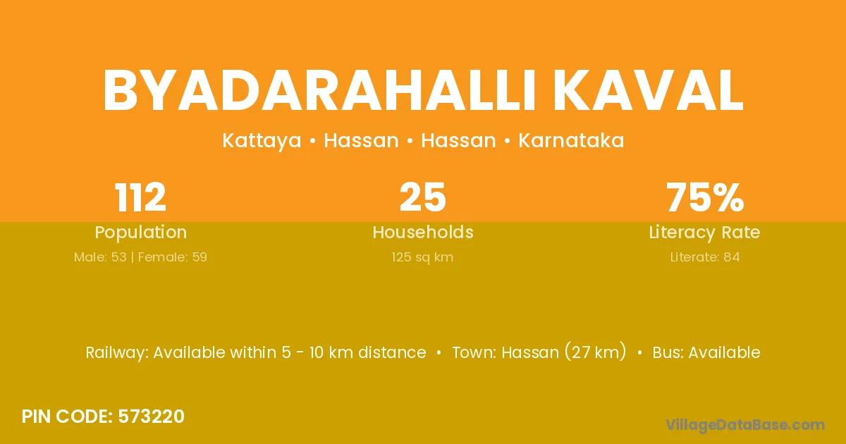 Turuvekere (20 km) is the nearest town to Byadarahalli Kaval village for major economic activities and is located approximately 20 km away.