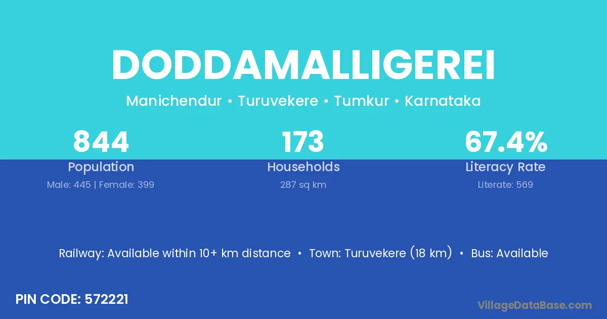 Turuvekere (18 km) is the nearest town to Doddamalligerei village for major economic activities and is located approximately 18 km away.