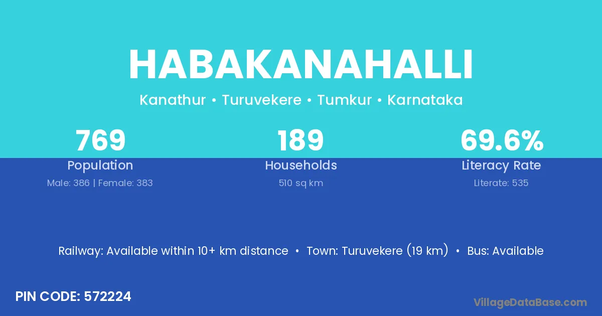 Turuvekere (19 km) is the nearest town to Habakanahalli village for major economic activities and is located approximately 19 km away.