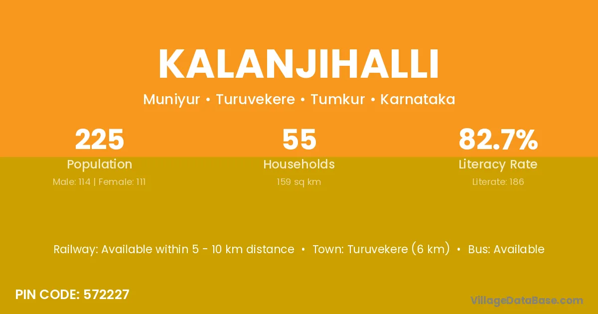 Kalanjihalli village has a total population of 225 people, of which 114 are males and 111 are females.