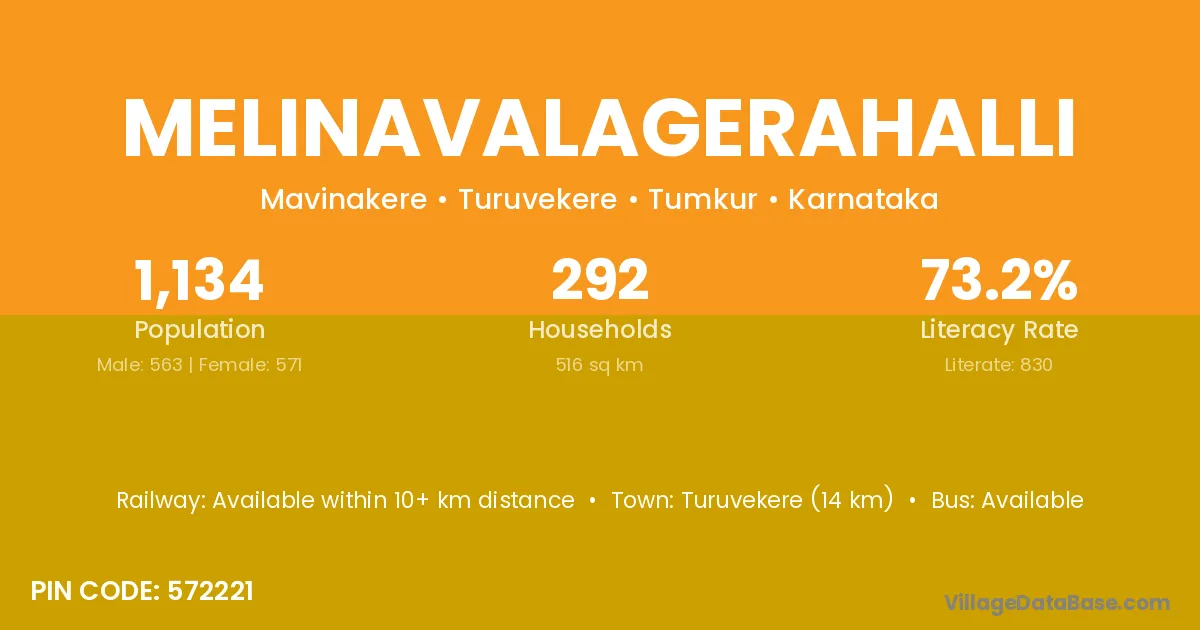 Turuvekere (14 km) is the nearest town to Melinavalagerahalli village for major economic activities and is located approximately 14 km away.
