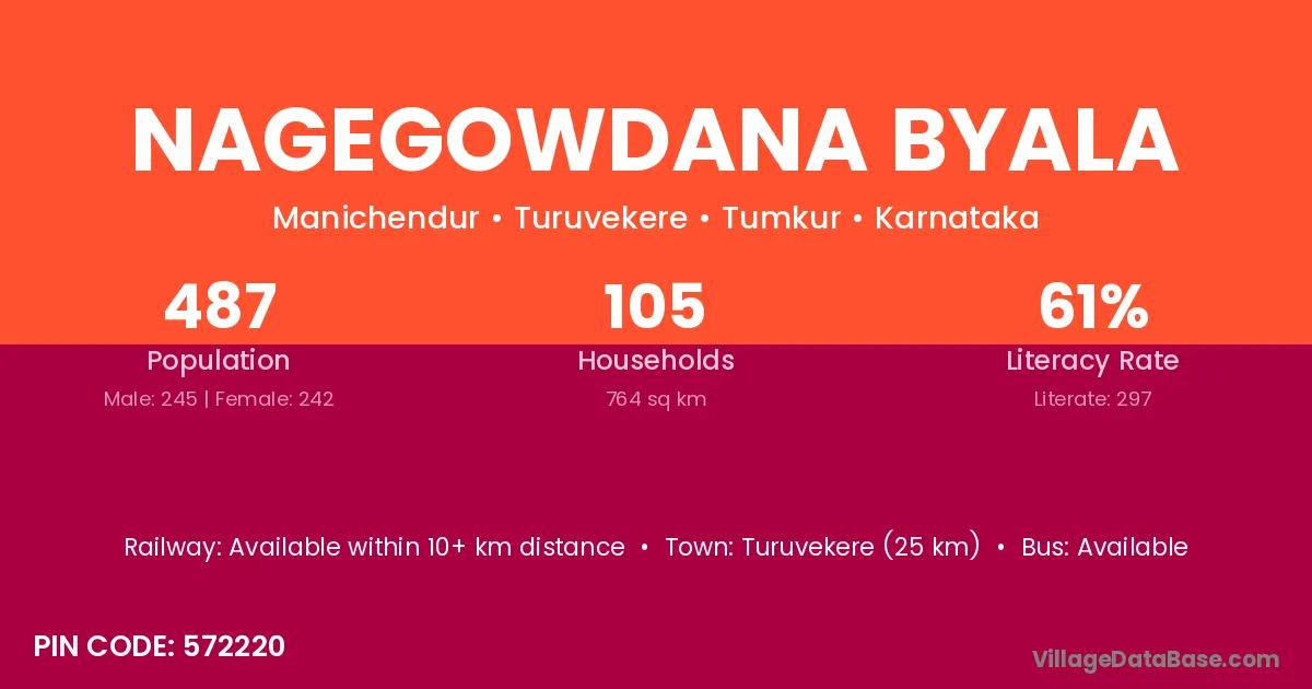 Nagegowdana Byala village has a total population of 487 people, of which 245 are males and 242 are females.