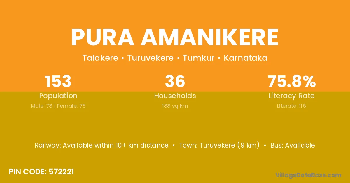Pura Amanikere village has a total population of 153 people, of which 78 are males and 75 are females.