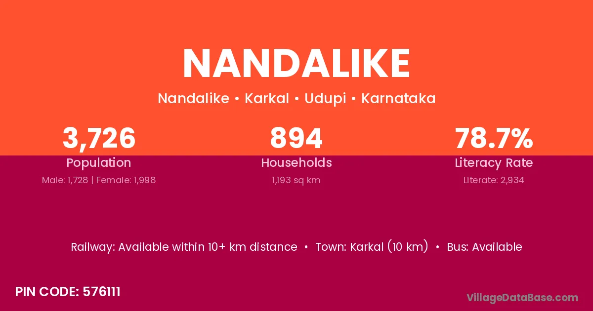 Karkal (10 km) is the nearest town to Nandalike village for major economic activities and is located approximately 10 km away.