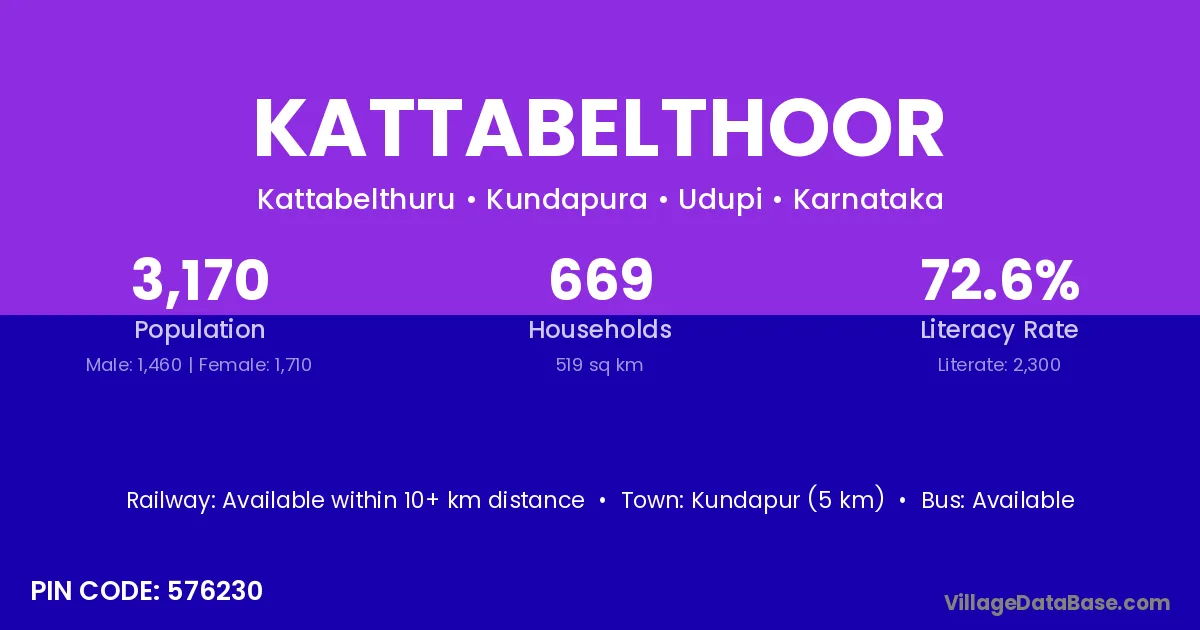 Kundapur (5 km) is the nearest town to Kattabelthoor village for major economic activities and is located approximately 5 km away.