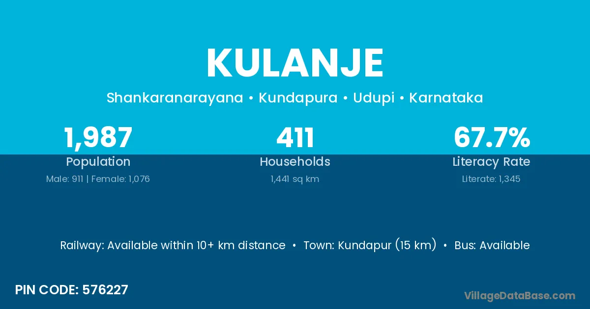 Kundapur (15 km) is the nearest town to Kulanje village for major economic activities and is located approximately 15 km away.