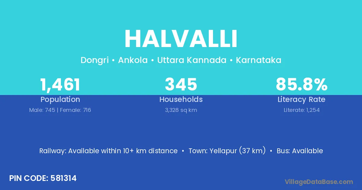 Yellapur (37 km) is the nearest town to Halvalli village for major economic activities and is located approximately 37 km away.