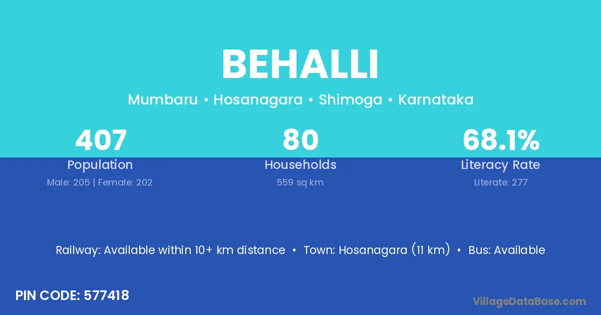 Bhatkal (5 km) is the nearest town to Behalli village for major economic activities and is located approximately 5 km away.