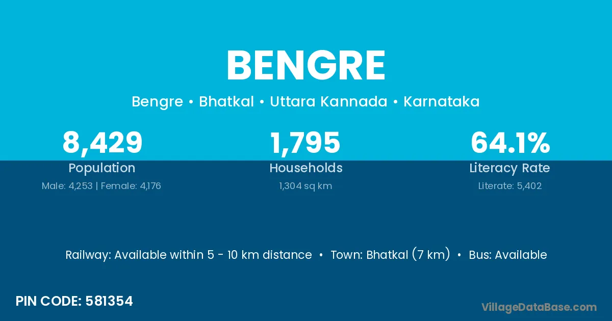 Bhatkal (7 km) is the nearest town to Bengre village for major economic activities and is located approximately 7 km away.