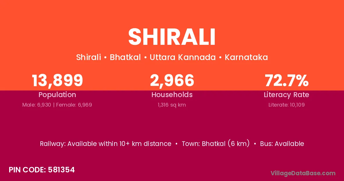 Bhatkal (6 km) is the nearest town to Shirali village for major economic activities and is located approximately 6 km away.