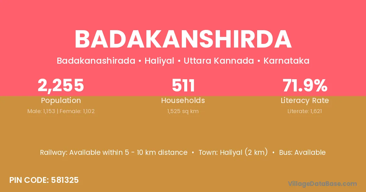 Haliyal (2 km) is the nearest town to Badakanshirda village for major economic activities and is located approximately 2 km away.