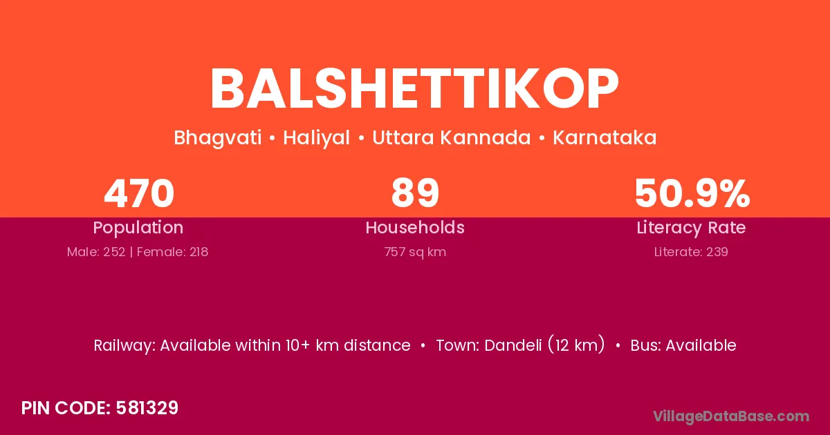 Dandeli (12 km) is the nearest town to Balshettikop village for major economic activities and is located approximately 12 km away.