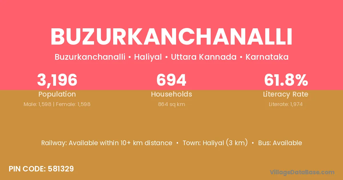 Haliyal (3 km) is the nearest town to Buzurkanchanalli village for major economic activities and is located approximately 3 km away.