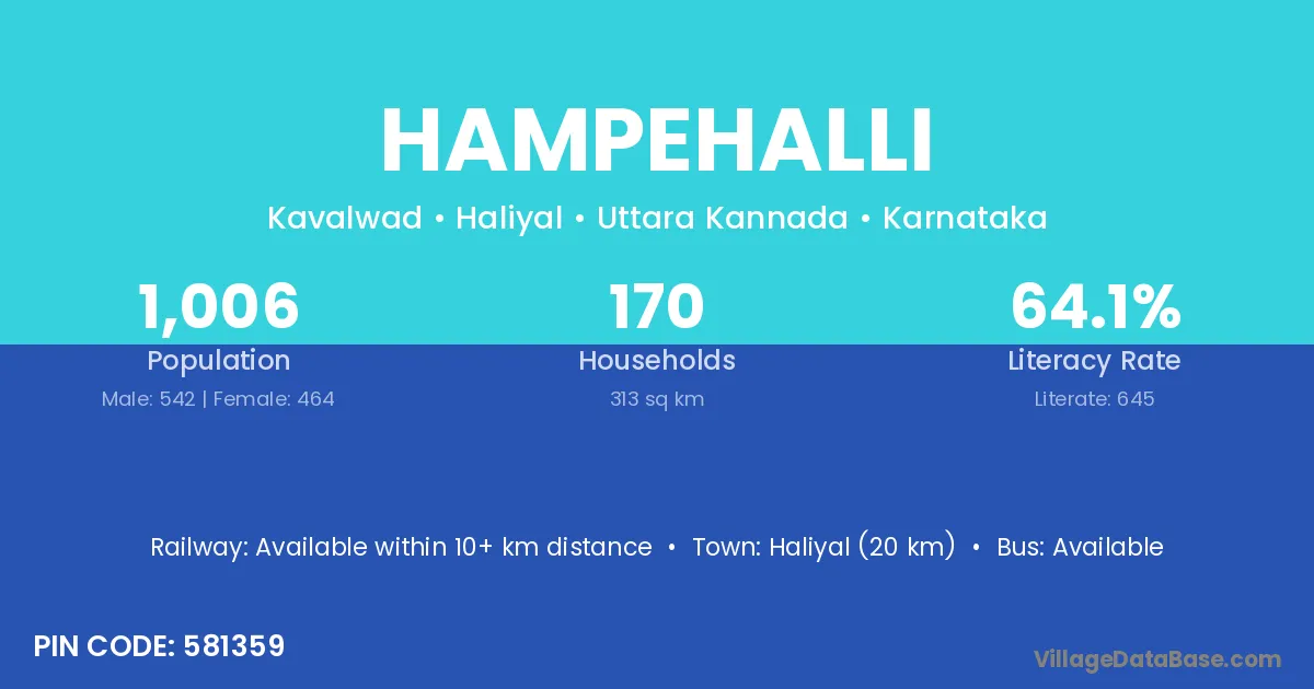 Haliyal (20 km) is the nearest town to Hampehalli village for major economic activities and is located approximately 20 km away.