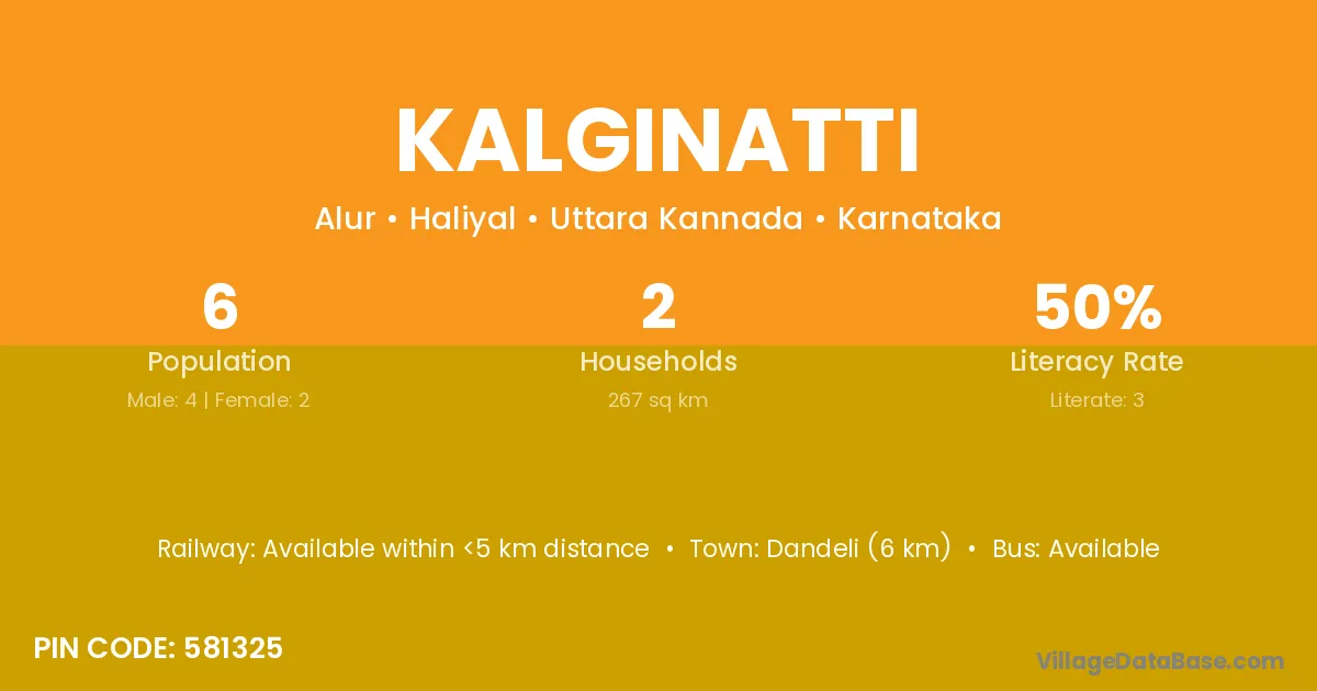 Dandeli (6 km) is the nearest town to Kalginatti village for major economic activities and is located approximately 6 km away.